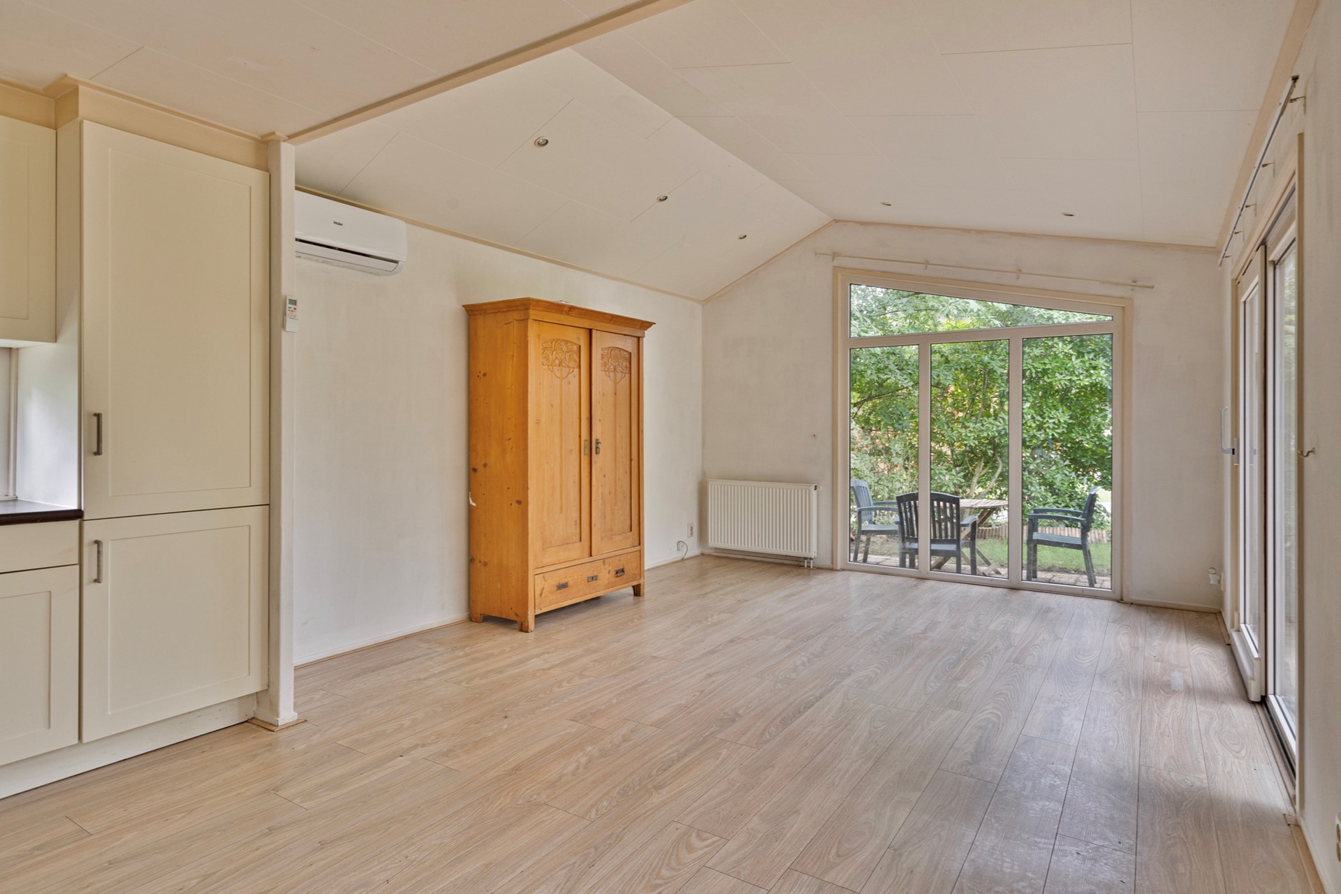 Vanuit de hal betreedt u de woonkamer. Deze ruimte vormt het hart van de woning. Met een open indeling, verhoogd plafond en veel lichtinval, voelt de woonkamer ruimtelijk aan. Daarnaast is er voldoende ruimte voor het creëren van een zit- en eethoek. Schuifdeuren bieden toegang tot de tuin, waardoor binnen en buiten naadloos met elkaar zijn verbonden in de zomermaanden. De woonkamer is voorzien van een airco, waarmee u de ruimte kan koelen of verwarmen.