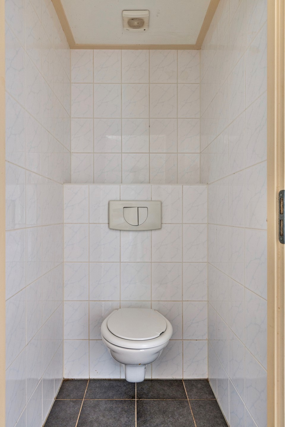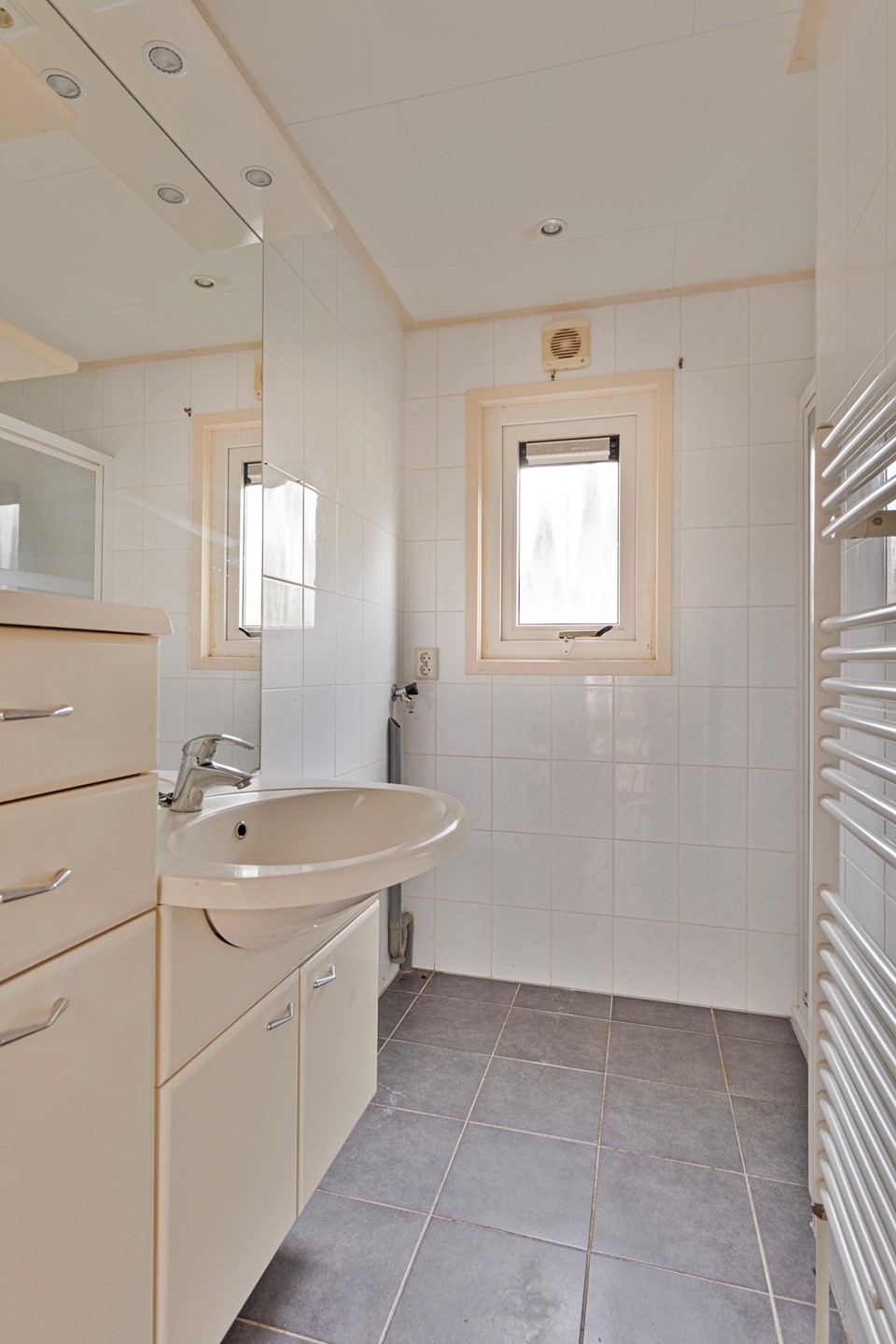 Grenzend aan de hal bevindt zich de badkamer en separate toiletruimte. De badkamer is ruim, goed onderhouden en voorzien van vloer- en wandtegels. Een inloopdouche, wastafel met spiegel, handdoekradiator maken de badkamer instapklaar. Tevens is er een witgoedaansluiting gesitueerd. De toiletruimte is eveneens betegeld en voorzien van een zwevend toilet.