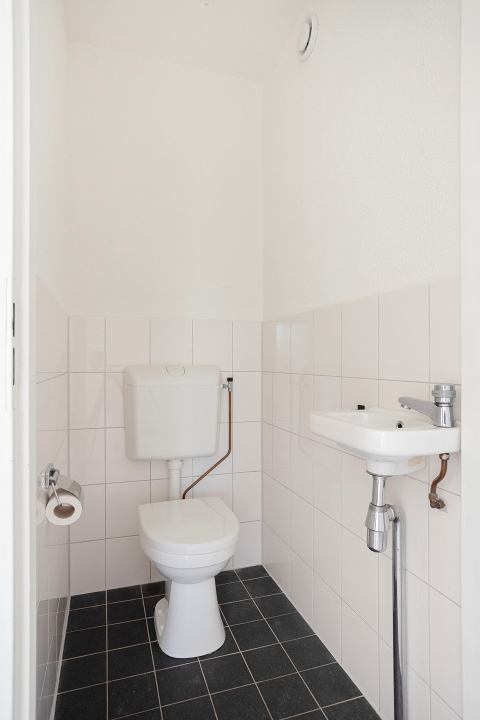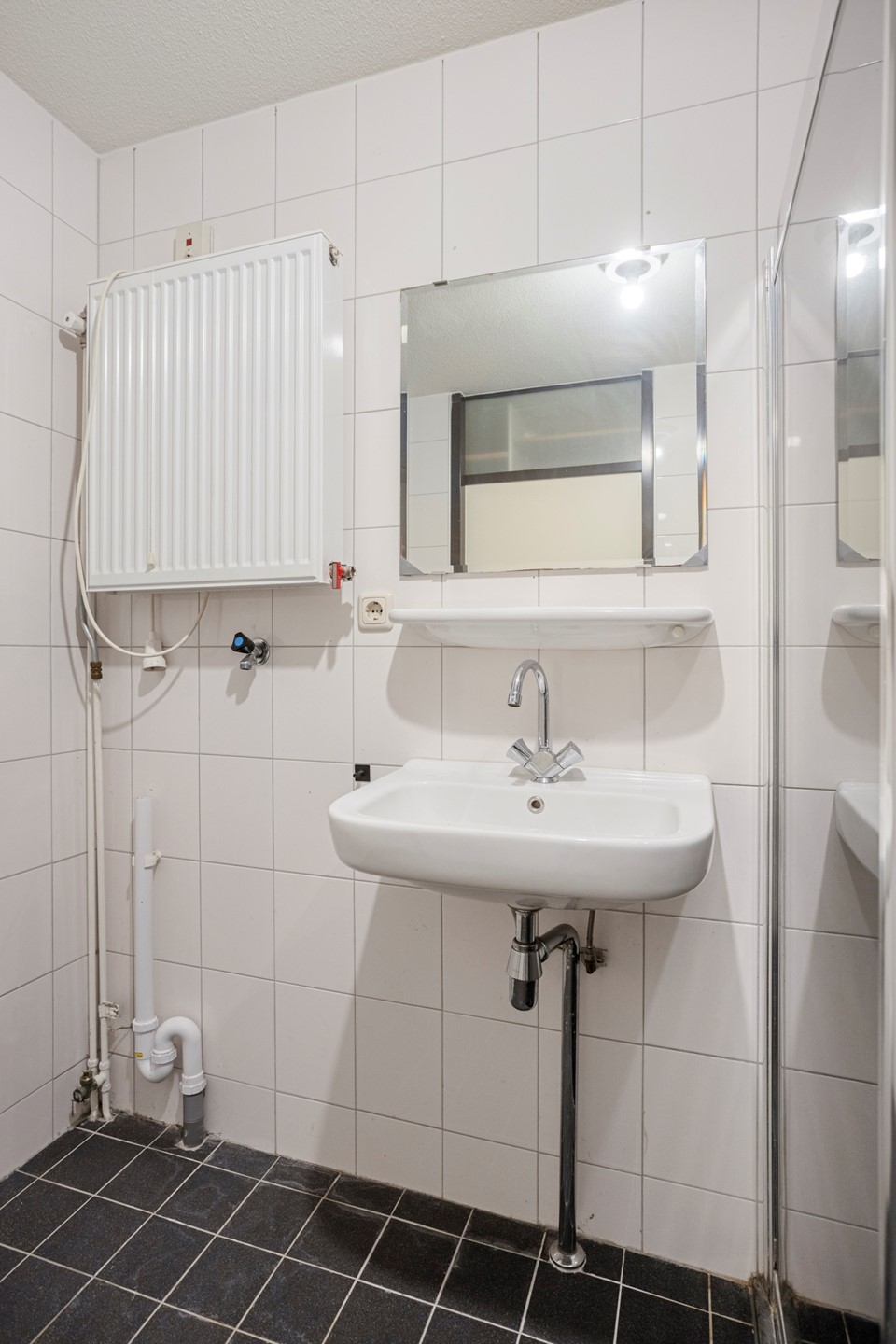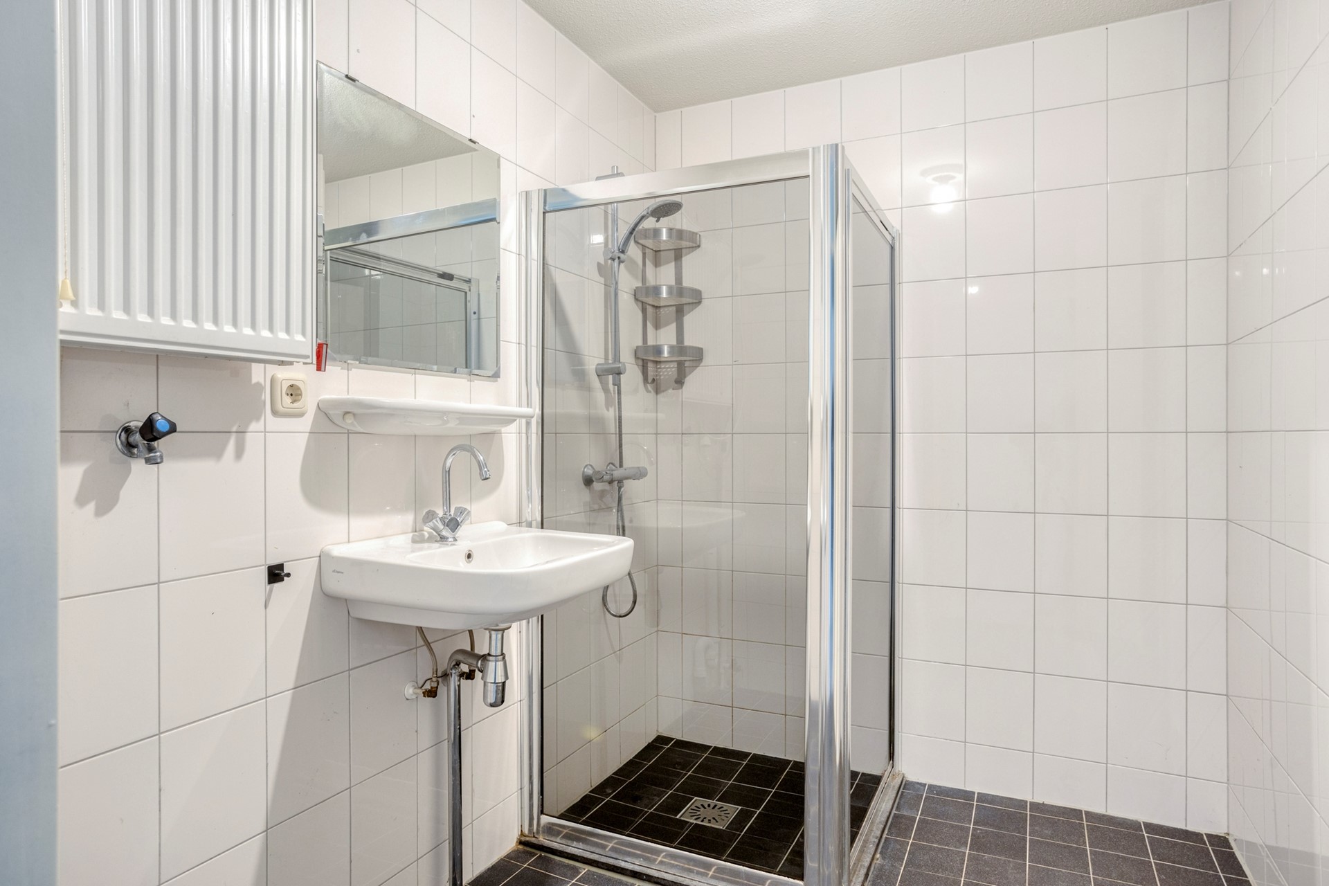 De badkamer, eveneens toegankelijk vanuit de hal, is volledig betegeld en verzorgd afgewerkt. U beschikt hier over een douchecabine, wastafel met spiegel en een radiator. De ruimte is instapklaar, maar biedt ook mogelijkheden om deze naar eigen wens te moderniseren. Daarnaast is er een separate toiletruimte, wat extra comfort en privacy biedt voor u en uw gasten.