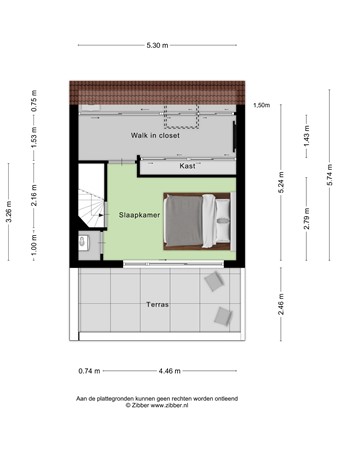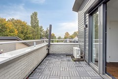 De zolderverdieping is een perfecte toevoeging aan deze woning. Hier vindt u een ruime slaapkamer met airconditioning, en een ruime walk-in closet met maatwerkkasten, waar ook de wasapparatuur netjes uit het zicht is weggewerkt. Via de schuifpui stapt u het zonnige dakterras op – een ideale plek voor een kop koffie in de ochtend of een glas wijn in de avondzon. Deze verdieping werd in 2021 buitenom geschilderd; de rest van de woning in 2024.
