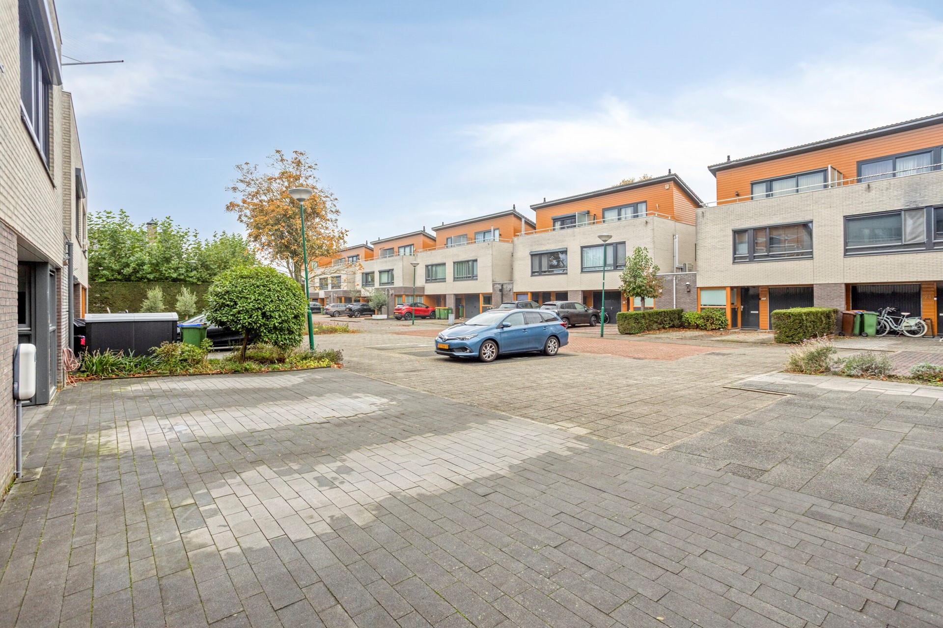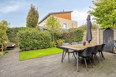 De achtertuin is een groene, stille plek waar u het hele jaar door kunt ontspannen. Dankzij de omsloten ligging geniet u van volledige privacy, met ruimte voor zowel een loungeset als een eettafel. De tuin is strak aangelegd met sierbestrating, een gazon en volwassen beplanting. Achterin bevindt zich een berging met overkapping, perfect voor tuingereedschap. U parkeert uw auto eenvoudig op eigen terrein aan de voorzijde of op de openbare parkeerplaatsen.