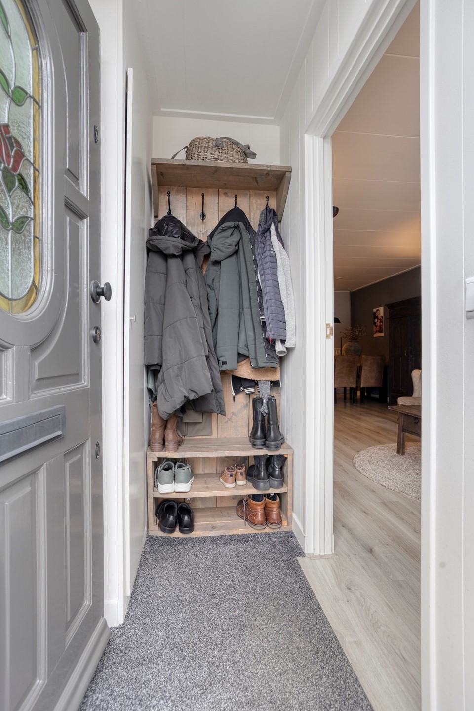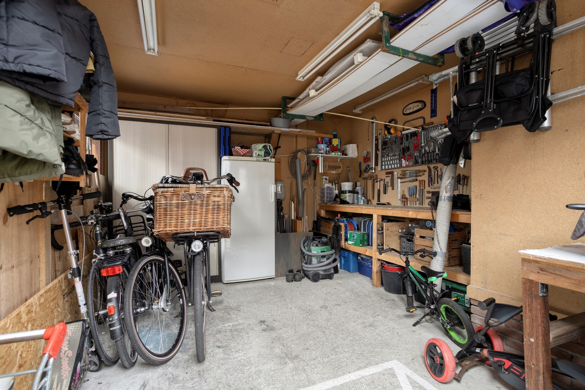 De achtertuin is ruim, onderhoudsvriendelijk aangelegd en biedt volop mogelijkheden om te genieten van het buitenleven. Het grote, betegelde terras nodigt uit tot lange zomeravonden met vrienden, terwijl kinderen veilig kunnen spelen op de ruime oppervlakte. Achter in de tuin staat een royale, volledig houten berging met bergzolder: perfect voor fietsen, tuingereedschap of een hobbywerkplek. Er is tevens een overdekte achterom voor extra bereikbaarheid. Dankzij de beschutte ligging heeft u hier veel privacy en kunt u gedurende het hele jaar een fijne buitenplek creëren. De voortuin geeft de woning bovendien een verzorgd en uitnodigend aanzicht.