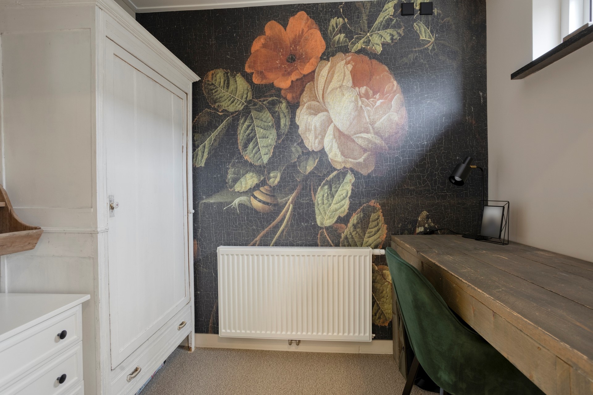 Een vaste trap brengt u op de tweede verdieping; deze biedt twee extra slaapkamers, elk kamer is charmant afgewerkt en voorzien van een dakraam die zorgt voor veel daglicht. De verdieping is strak afgewerkt en voelt verrassend ruim dankzij de slimme indeling onder het schuine dak. Op de overloop vindt u een aparte opstelling voor de wasmachine en droger, waardoor deze verdieping multifunctioneel te gebruiken is: van extra slaapkamers tot logeerkamers, of wellicht als werkruimte. Middels een vlizotrap krijgt u toegang tot de bergzolder, waar u extra opbergruimte vindt.