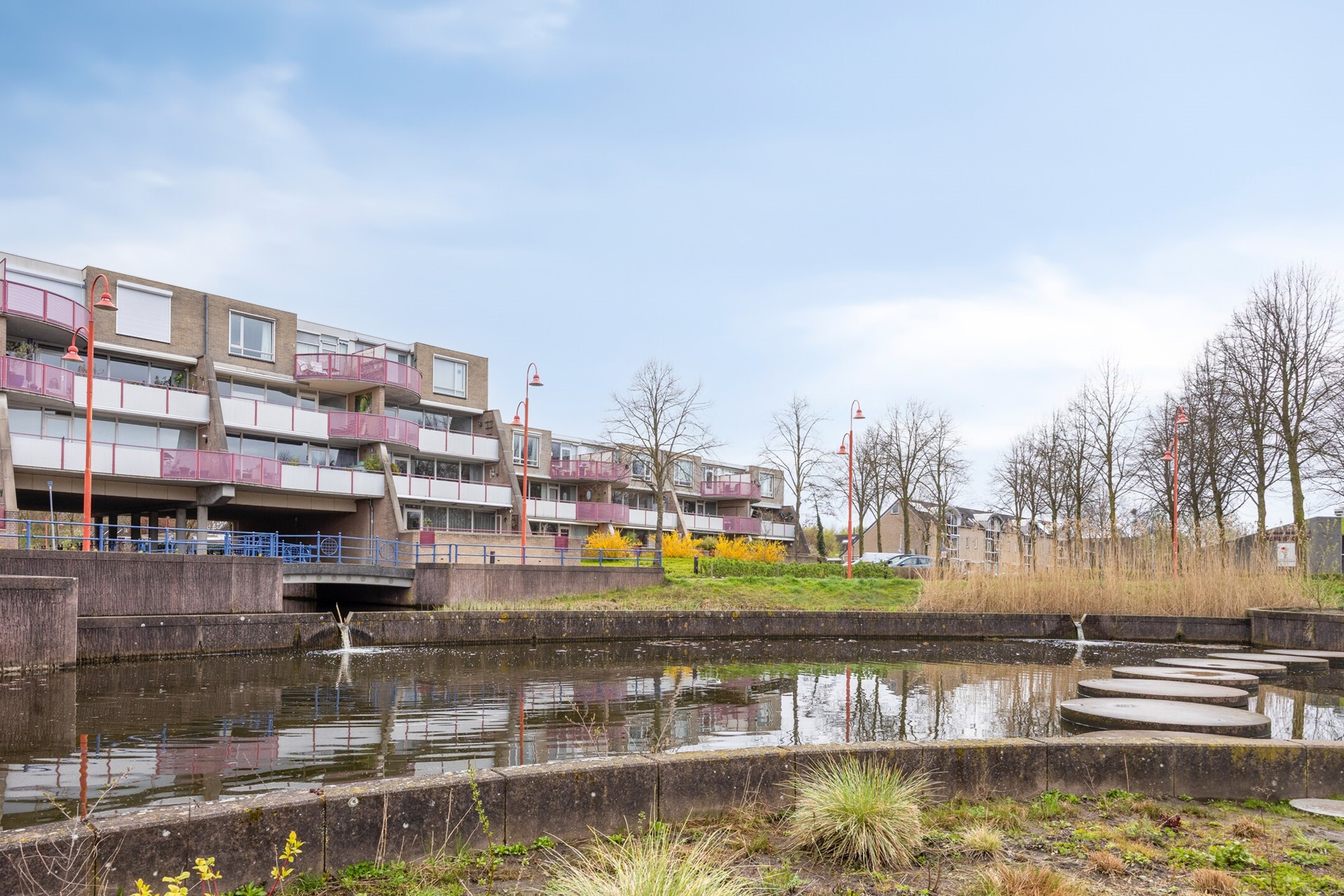 Een licht appartement met een ruim balkon/-dakterras en vrij uitzicht over een waterpartij