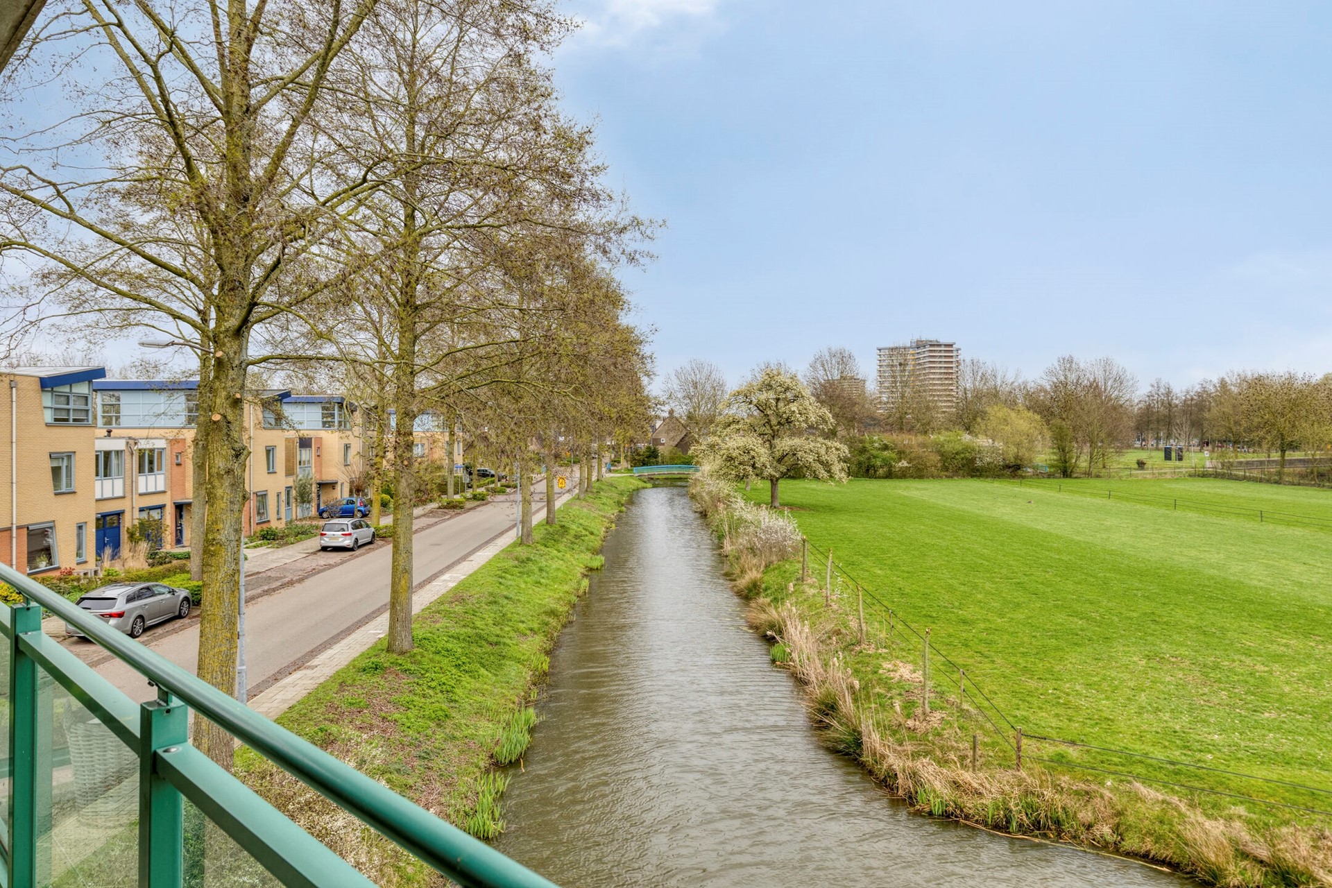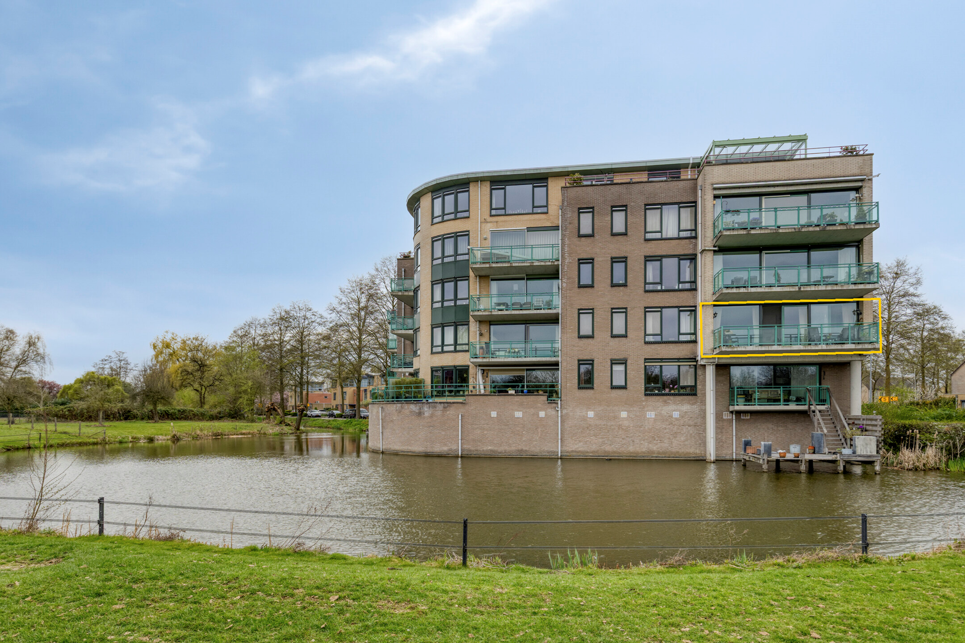 Het ruime balkon vormt een fijne plek om tot rust te komen en te genieten van het buitenleven. Vanuit de woonkamer stapt u hier zo naar buiten, waar u voldoende ruimte heeft voor een zitje en kunt genieten van een prachtig en rustgevend uitzicht over het water en de weilanden.